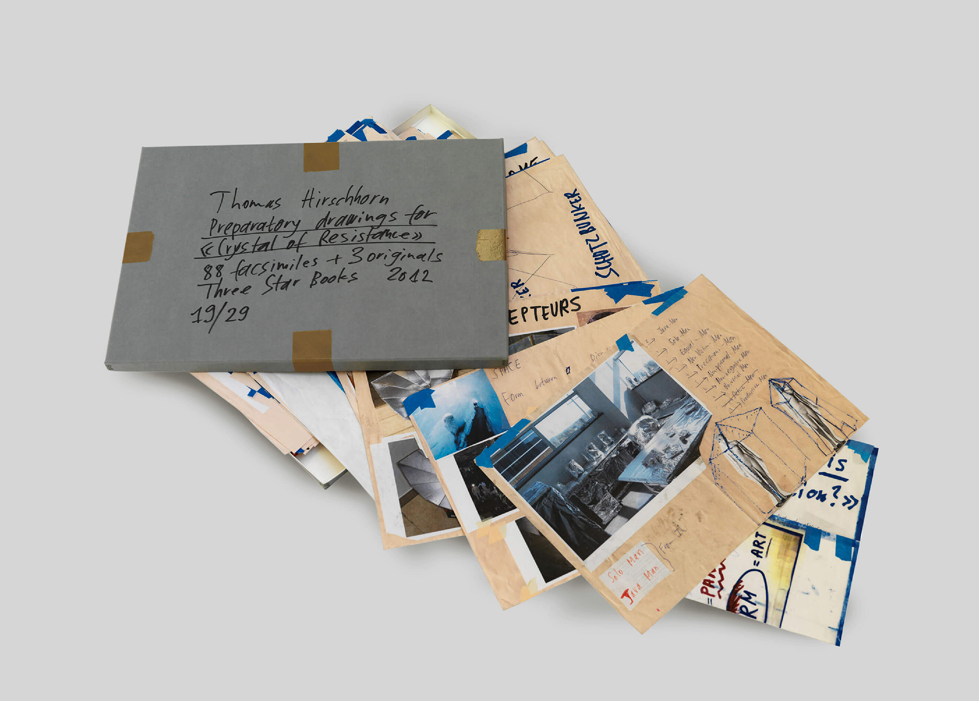 Boîte d'archive de facsimilés des dessins préparatoires de Thomas Hirschhorn pour son installation Crystal of Resistance à la biennale de Venise.