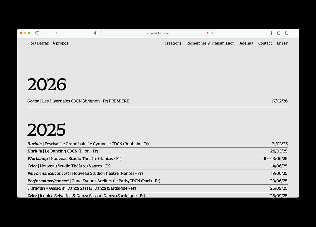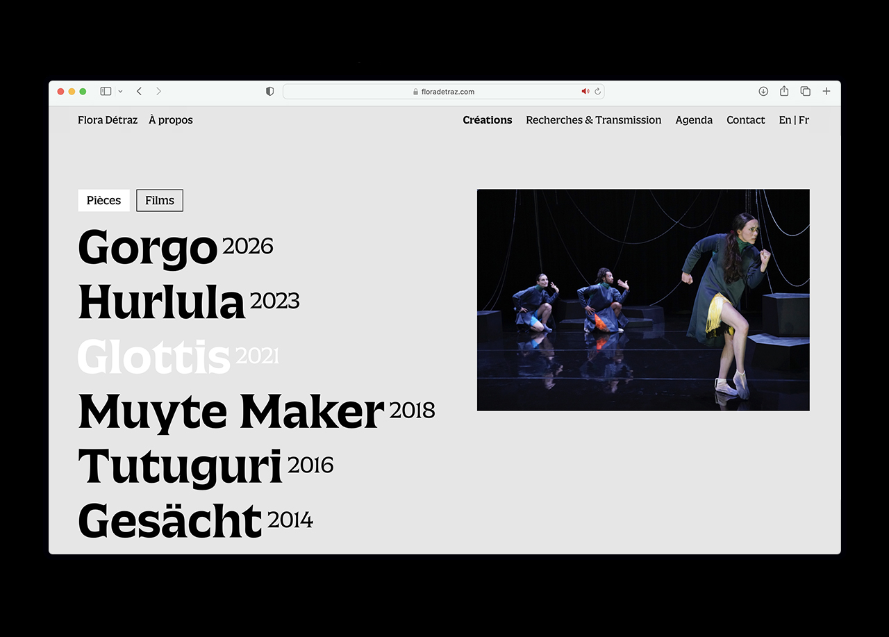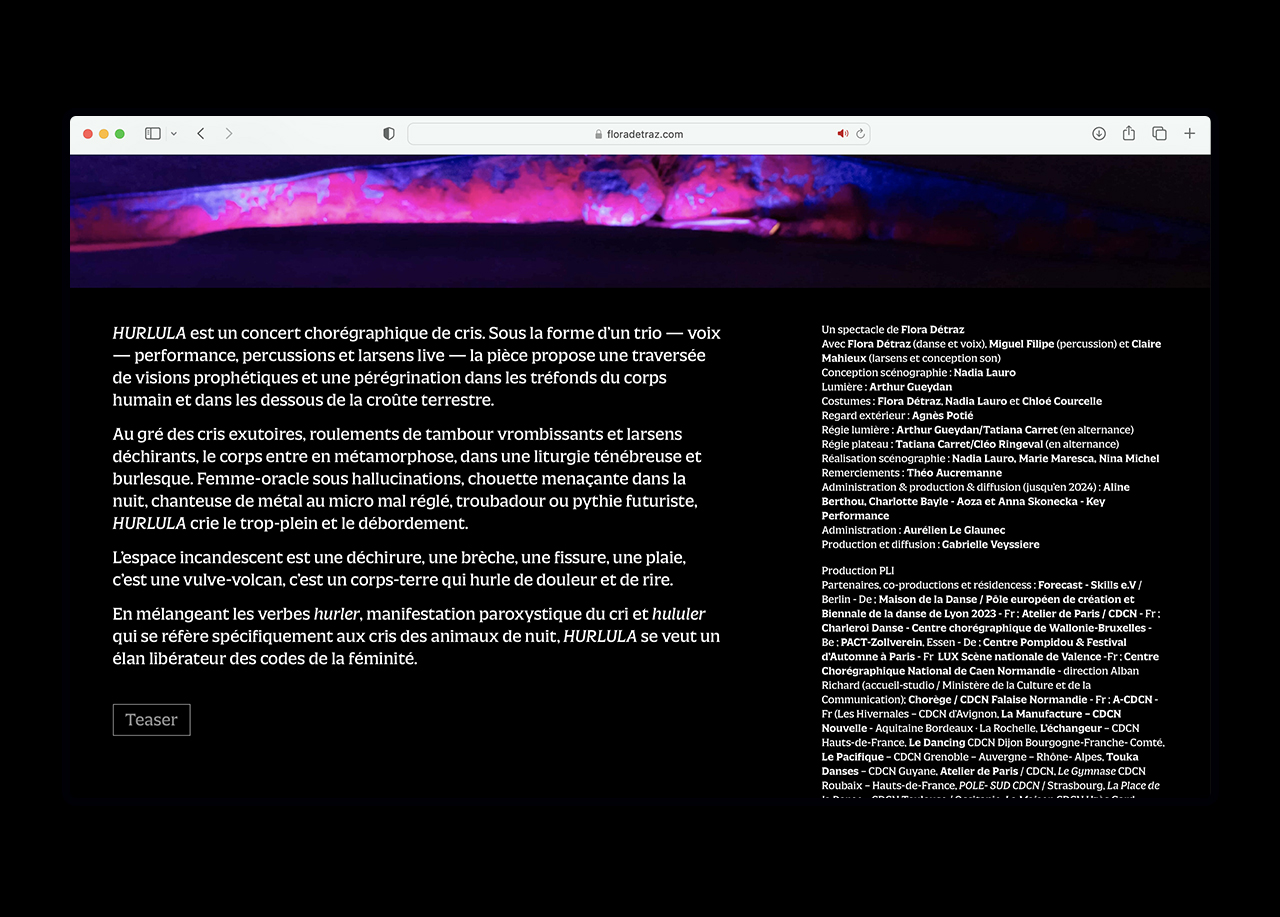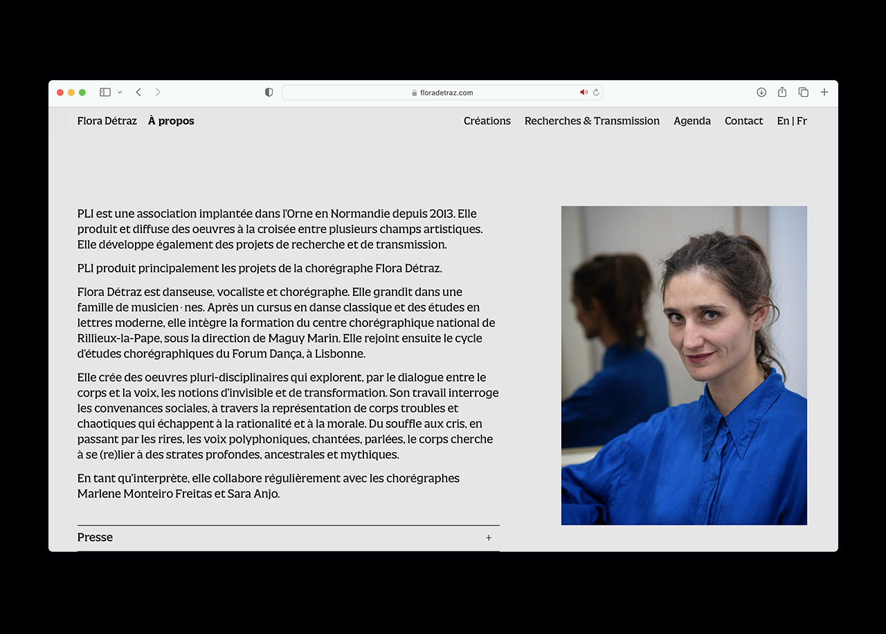 Identité visuelle de la chorégraphe Flora Détraz (compagnie PLI)